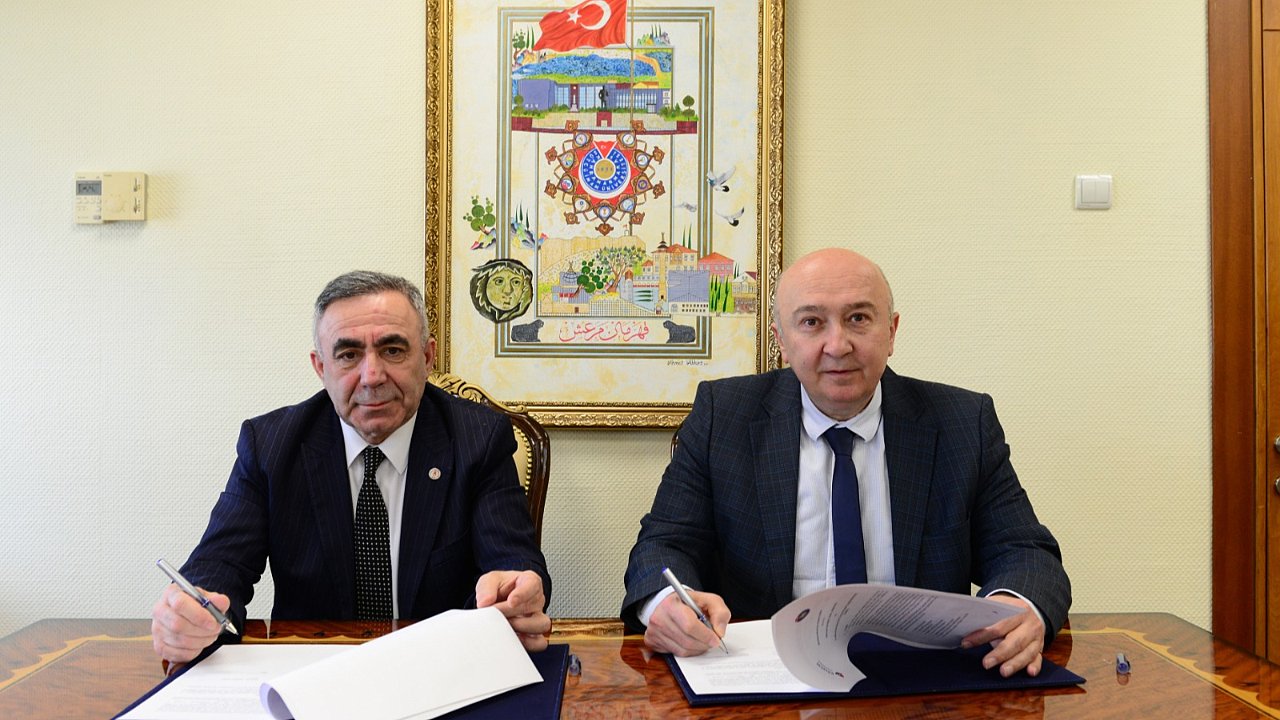 Ziyaretin sonunda KSÜ Rektörü Yasım ile Azerbaycan Hazar Üniversitesi Genel Sekreteri Alovset Amirbeyli iki üniversite arasındaki işbirliğini içeren protokole imza attı.