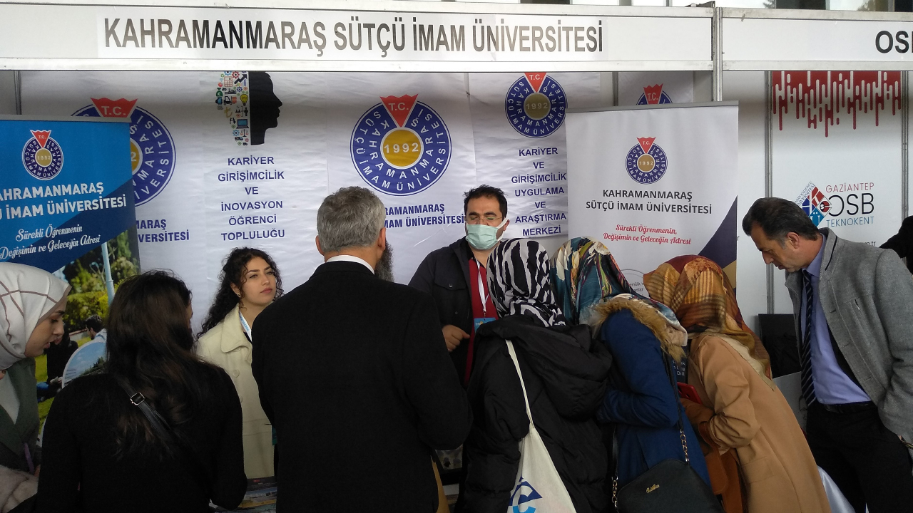8 üniversitenin paydaşı olduğu ve 150 firmanın katıldığı fuarda öğrencilerimiz Türkiye’nin önemli kamu kurumları ve özel sektör kuruluşlarını ziyaret ederek kariyer planlaması doğrultusunda yapabileceklerini kamu kurum ve kuruluşlarının temsilcileri ve özel sektör temsilcileri ile değerlendirme imkânı buldu. KSÜ standında yer alan takı tasarım ürünleri, ceviz çeşitleri, KSÜ’de de üretilen ürünler (fasulye, dezenfektan, zeytinyağı vd.) ve diğer materyaller katılımcılardan yoğun ilgi gördü.