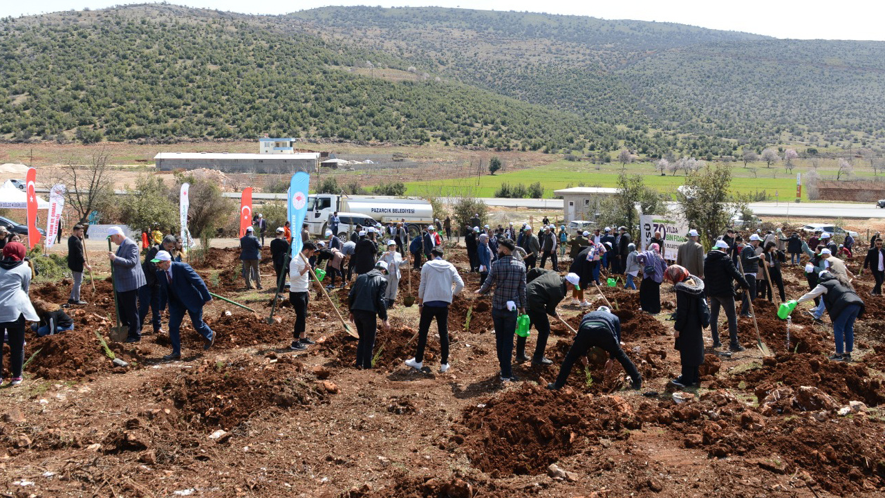 Toplam 30 bin fidanın toprakla buluşturulmasının hedeflendiği etkinlikler kapsamında Pazarcık’ta oluşturulan dikim sahasında 5 bin fidanlık hatıra ormanı oluşturuldu.