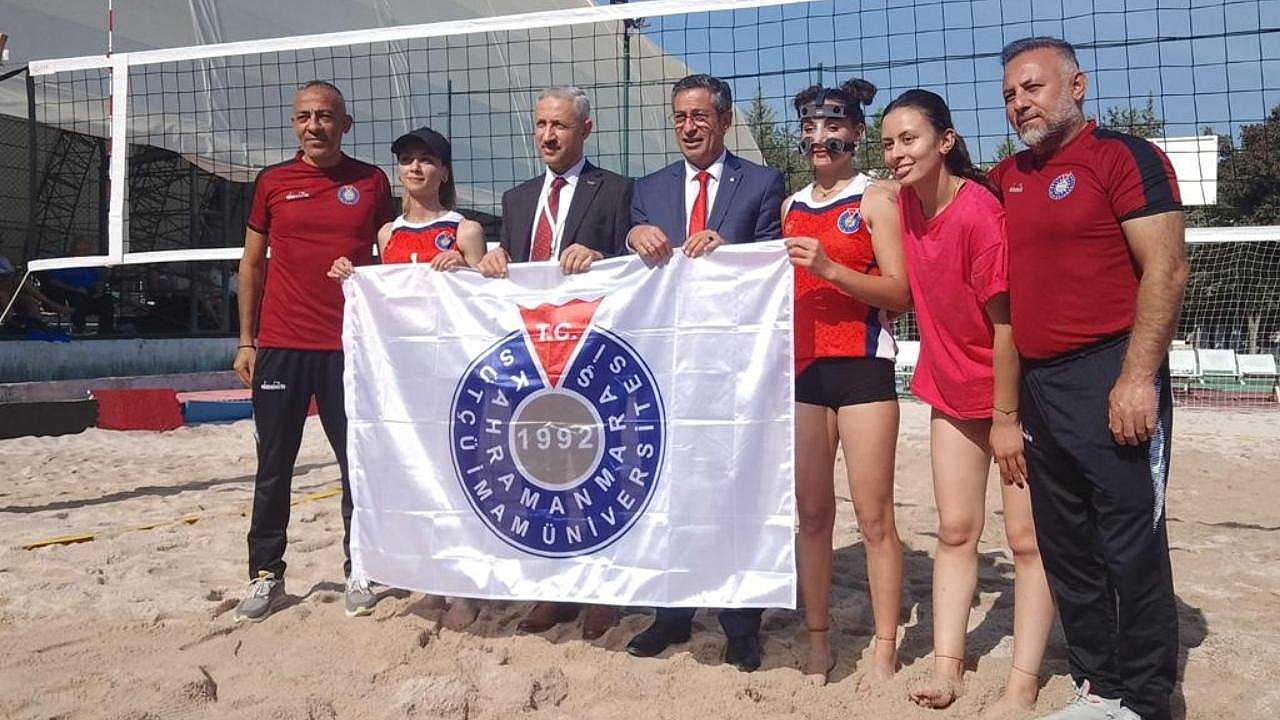 Şampiyon olan KSÜ kadın plaj voleybol sporcuları birincilik kupalarınıHatay Mustafa Kemal Üniversitesi Rektörü Prof. Dr. Veysel Eren ve Türkiye Üniversite Sporları Başkanı Prof. Dr. Mehmet Günay’ın elinden aldı.