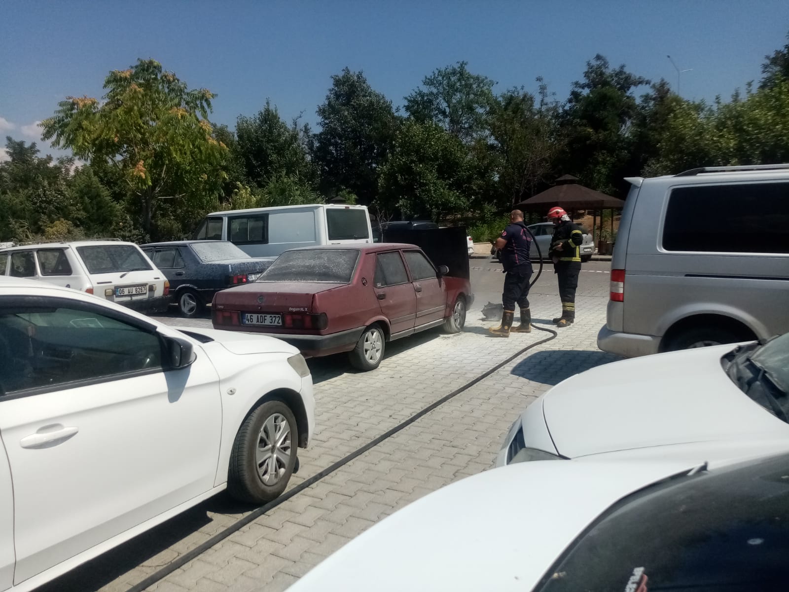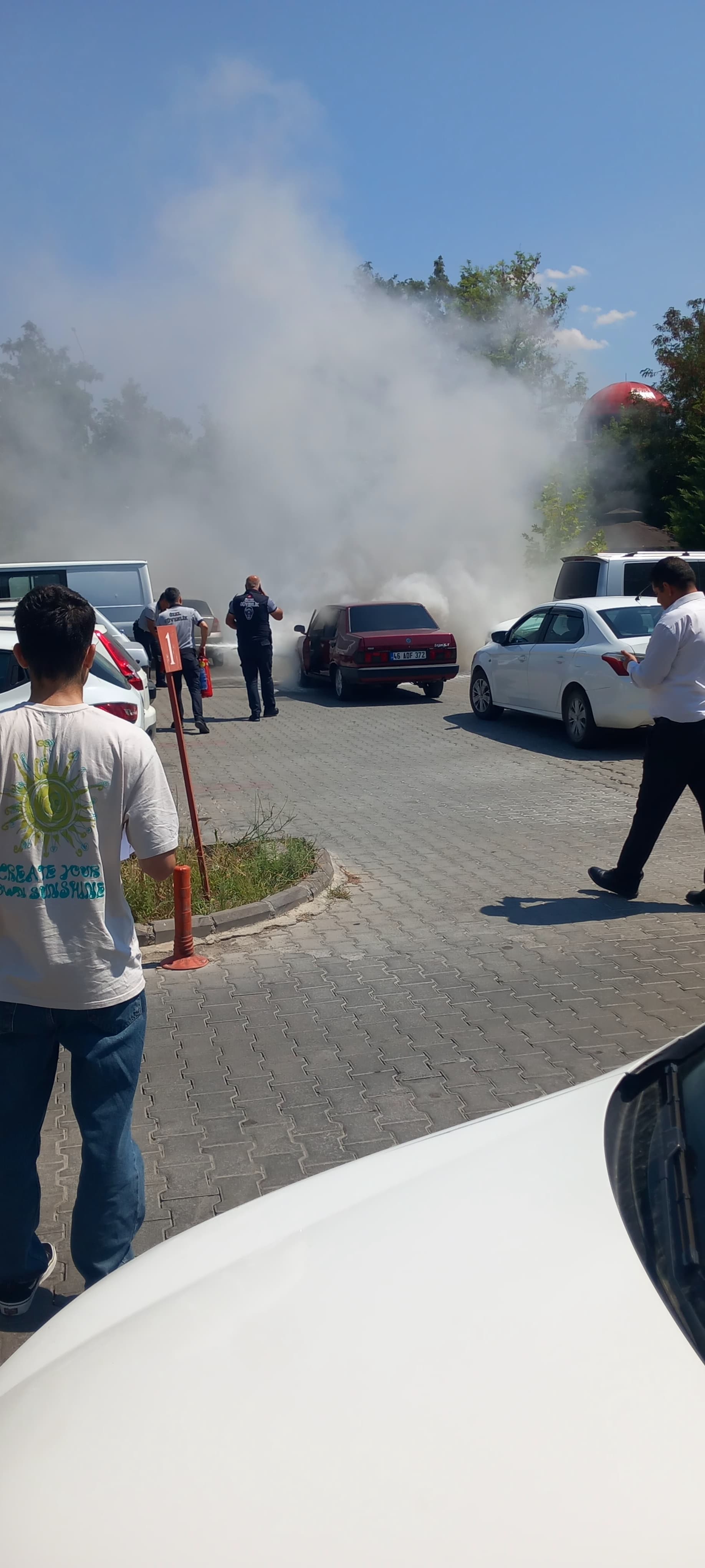 Kahramanmaraş’ta bugün KSÜ Tıp Fakültesi otoparkında meydana gelen araç yangını yürekleri ağza getirdi. Otoparkta park halindeki 46 ADF 372 plakalı araç henüz bilinmeyen bir nedenle yanmaya başladı. Yangına ilk müdahaleyi hastanenin güvenlik amiri Ömer Kazı ve güvenlik personelleri yaptı. Daha sonra ihbar üzerine olay yerine itfaiye ekipleri geldi. Ancak otoparkın kapasitesinin yetersiz olması, araçların çok sıkışık park etmesi nedeniyle itfaiye ekipleri, yanan aracın yanına gelmekte zorlandı. İtfaiye ekiplerince yapılan çalışmalar sonrası söndürülen araçta soğutma çalışmaları yapıldı.