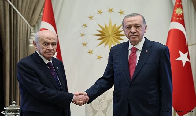 Cumhurbaşkanı Recep Tayyip Erdoğan, Milliyetçi Hareket Partisi Genel Başkanı Devlet Bahçeli ile bir araya geldi.ANKARA (İGFA) - İletişim Başkanlığı'ndan alınan bilgiye göre, Cumhurbaşkanı Recep Tayyip Erdoğan, MHP Genel Başkanı Devlet Bahçeli'yi saat 14.00'te, Cumhurbaşkanlığı Külliyesi'nde kabul etti.Görüşmede, Türkiye'yi Cumhurbaşkanı Erdoğan'ın temsil ettiği NATO Zirvesi'nde elde edilen kararların masada olması beklenirken, görüşmenin bir diğer sıcak başlığın ise ekonomi olması öngörüldü.Ayrıca iki liderin görüşmesinde TBMM'nin yeni döneminde atacağı adımların da görüşüleceği konular arasında olacağı kaydedildi.