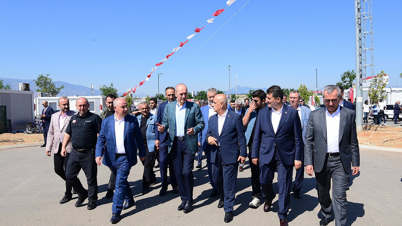 Büyük Bir Dayanışma Örneği GösterdikTBMM Başkanı Kurtulmuş açıklamalarının devamında, “Şehirlerin yeni bir takım fonksiyonlarla imar ve inşa edilmesi devletimizin öncelikli çalışmalarından birisi. Ümit ediyoruz ki Kahramanmaraş çok kısa süre içerisinde eski haline dönecek ve vatandaşlarımız hayatlarını çok daha iyi bir şekilde sürdürmeye devam edecek. Deprem bölgesinde vatandaşlarımızın acılarını hafifletmek için devletimizin tüm kurum ve kuruluşları olarak yoğun gayret sarf ediyoruz. Dünyada hemen hemen hiçbir milletin gösteremeyeceği büyük bir dayanışma ruhuyla, insanlarımız depremin ilk anından itibaren deprem bölgelerine yardım için seferber oldu. Büyük bir dayanışma örneği gösterdik. Bu dayanışma sayesinde acılarımızın bir nebze olsun hafiflediğine şahit olduk. Bu dayanışmayı ortaya koyan tüm vatandaşlarımıza teşekkür ediyoruz. Allah bir daha bu millete böyle acılar göstermesin inşallah” cümlelerini kaydetti. Programın devamında heyet, EXPO 2023 alanındaki Savunma Sanayii Konteyner Kent’i ziyaret ederek vatandaşların bayramlarını kutladı.