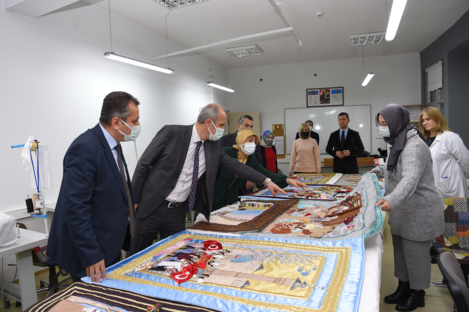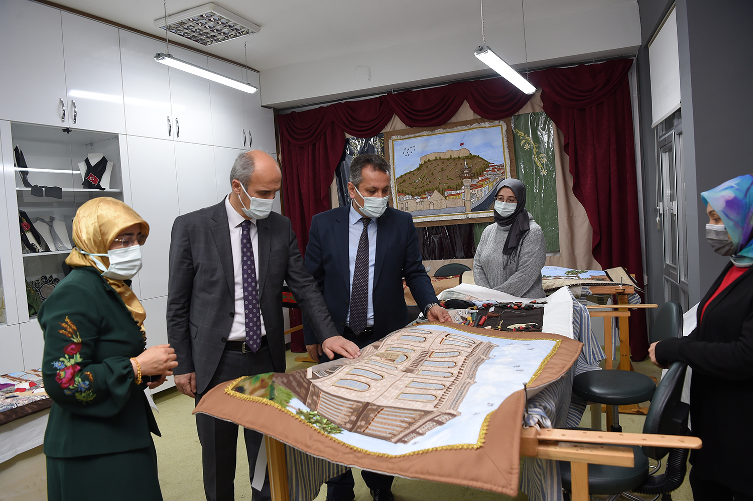 Olgunlaşma Enstitüsü Müdürü Mutlu Aslantürk’ten sergi hakkında bilgiler alan Dulkadiroğlu Belediye Başkanı Necati Okay, bu yıl da anlamlı bir sergiye imza atacaklarının altını çizdi.