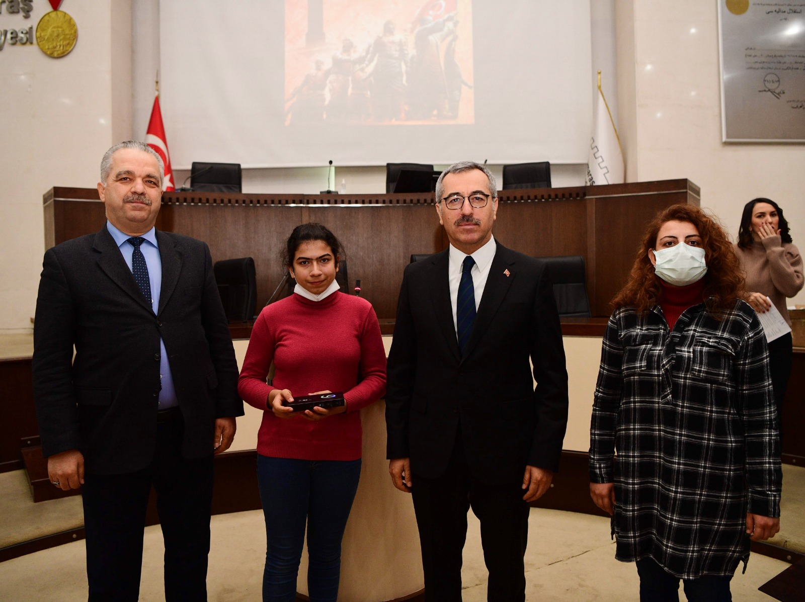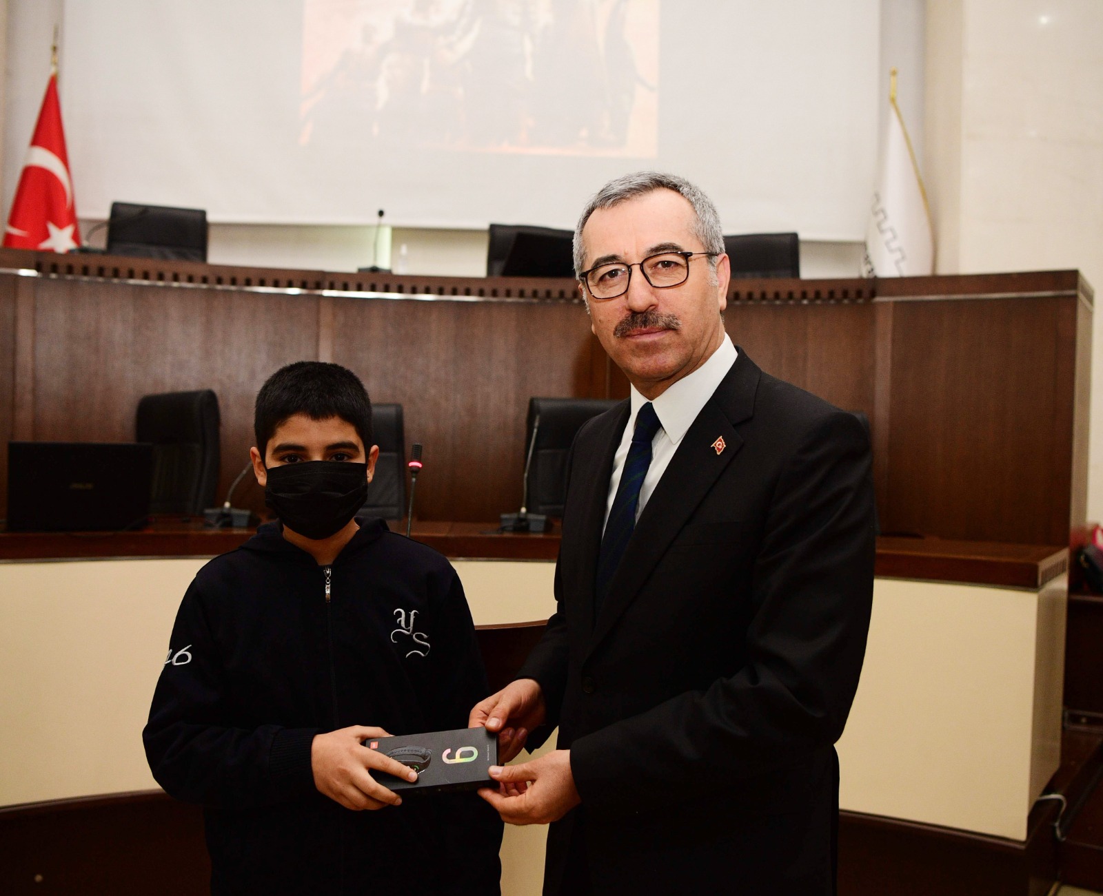 Büyükşehir Belediye Başkanı Hayrettin Güngör’ün konuşmasının ardından ödül törenine geçildi. Başkan Hayrettin Güngör’ün yanı sıra AK Parti Kahramanmaraş Milletvekili Habibe Öçal ve İl Milli Eğitim Müdürü Yusuf Kahraman dereceye giren öğrencilere ödüllerini takdim etti. Yarışmalar kapsamında birinci olan öğrencilere bisiklet, ikinci olan öğrencilere tablet, üçüncü olan öğrencilere akıllı saat, dördüncü ve beşinci olan öğrencilere ise akıllı bileklik hediye edildi.
