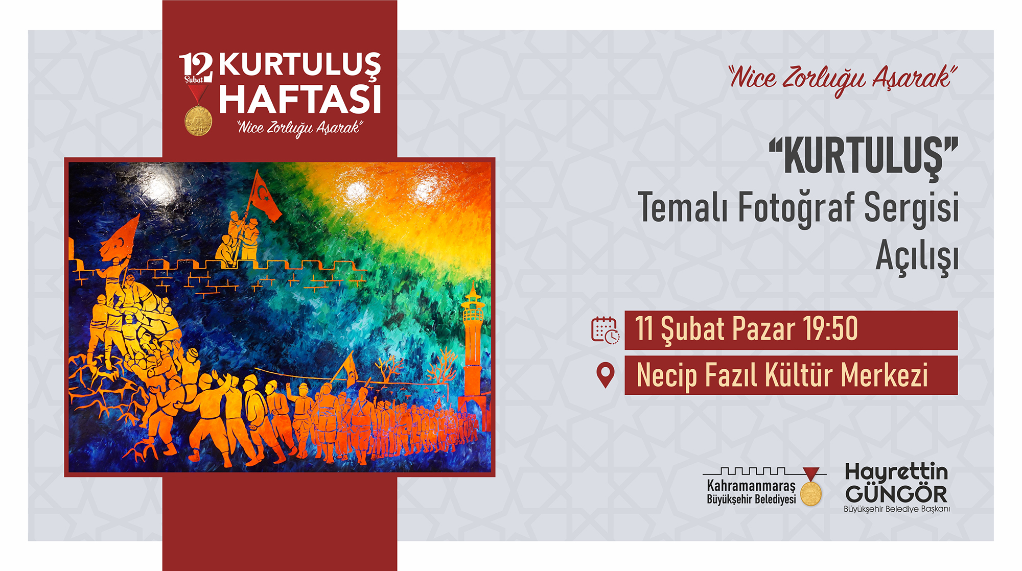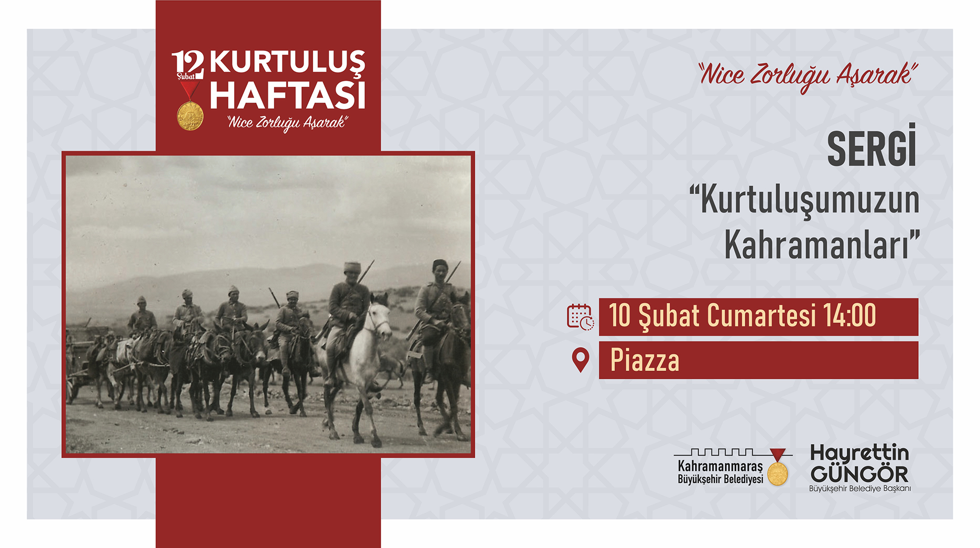 Kurtuluş Haftası etkinlikleri, 10 Şubat Cumartesi günü saat 14.00’da Piazza AVM’de “Kurtuluşumuzun Kahramanları” ve “Arşiv Belgelerine Göre Maraş Milli Mücadelesi” konulu sergilerin açılışıyla devam edecek. Aynı gün 19.30’da Necip Fazıl Kısakürek Kültür Merkezi’nde düzenlenecek konferansta Gazeteci – Yazar Yusuf Kaplan, Kahramanmaraşlılara seslenecek.