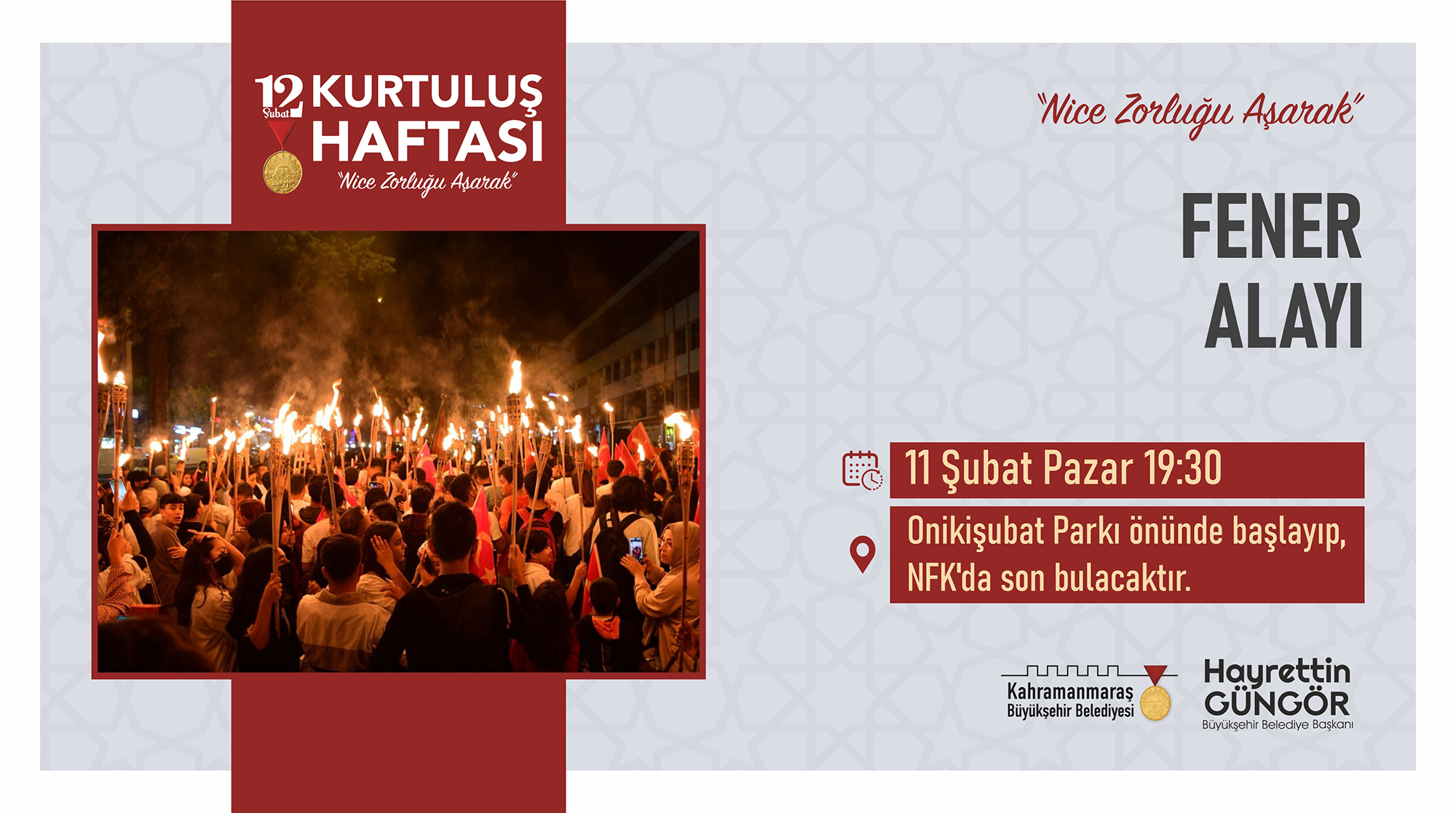 Kahramanmaraş’ın düşman işgalinden kurtuluşunun 104. yıl dönümü dolayısıyla şehirde “Nice Zorluğu Aşarak” temalı bir dizi etkinlik ve anma programı düzenlenecek. Kahramanmaraş Büyükşehir Belediyesi, Valilik ve paydaş kurumlar iş birliğiyle 9 – 12 Şubat tarihleri arasında; resim sergisinden söyleşiye, konferanstan fener alayına, mehteran konserinden şiir dinletisine, tiyatrodan kısa film gösterime onlarca etkinlik vatandaşlarla buluşturulacak.