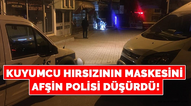 Afşin Polisi, maske ve eldiven takarak kuyumcu soymaya çalışan hırsızlık şüphelisinin maskesini düşürdü.Afşin’de 24 Aralık 2019 günü gece saat 03:00 sıralarında yaya devriye görevi yapan Afşin İlçe Emniyet Müdürlüğü Asayiş Büro Amirliği ekiplerininBeyceğiz Mahallesi, Dedebaba Caddesindeki bir kuyumcunun asma kilitlerini Demir Kesme Makasıyla kesmeye çalışan şahsı suçüstü yakaladı.Yüzü maskeli ve eldivenli bir şekilde kuyumcuya girmeye çalışan hırsızlık şüphelisi şahıs Polisin “Dur” ihtarına uymayarak elindeki Demir Makası kendisini kovalayan Polislerin üzerine fırlatarak kaçmaya çalışırken yaklaşık 500 metre kovalamaca sonunda kıskıvrak yakalandı.Yapılan sorgusunda Sarız 1986 doğumlu Ahmet K. olduğu anlaşılan şahsın Afşin’e hırsızlık amacıyla bir gün önce geldiği, Kayseri’de de iki ayrı kuyumcudan hırsızlık yaptığı ortaya çıkarılmıştır. Kayseri’deki kuyumculardan çaldığı altınlardan bir miktarını bozdurarak yola çıktığı ortaya çıktı.
