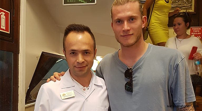 da tadına bakan Loris Karius, yemekten sonra bir süre mekanın çalışanları ile