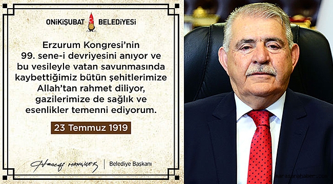 Onikişubat Belediye Başkanı Hanefi Mahçiçek, Erzurum Kongresi'nin yıldönümü nedeniyle bir mesaj yayımladı.