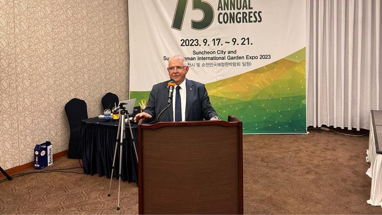 Deprem sonrası çalışmalarımıza hız vererek 26 Ağustos’ta açılışını yapmayı planladığımız EXPO 2023 projemiz, Güney Kore’nin Suncheon eyaletinde yapılan AIPH 75. Yıllık kongresinde görüşüldü. Expo 2023 projemizin son durumu hakkında AIPH delegelerine sunum gerçekleştirdik. Bizim ne kadar kararlı olduğumuzu, bu projeyi gerçekleştirebileceğimizi gördüler. Genel Kurul sonrası AIPH’nin yönetim kurulu toplantısında görüşülerek 14-22 Ekim tarihleri arasında bir tarihte açılışını gerçekleştirebileceğimiz onayını verdiler.
