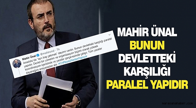 AK Parti Genel Başkan Yardımcısı Mahir Ünal, twitter hesabından paylaşımlarda bulunarak CHP'li belediyelerin yaptığının paralel bir yapılanma olduğunu kaydetti.
