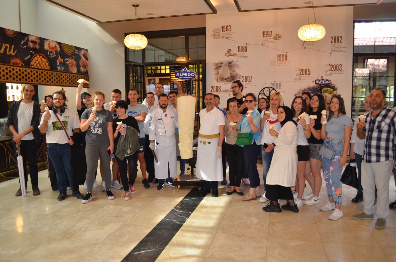 Kahramanmaraş’ın gönüllü turizm elçisi Alpedo-Kervan Lezzet Grubu Yönetim Kurulu Başkanı Sami Kervancıoğlu, Erasmus projesiyle kente gelen Makedonyalı öğrencilere Kervanhan gastronomi tesislerinde dondurma şovu yaptı.