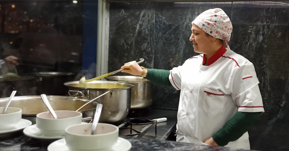 Kahramanmaraş'ta bir çok paça salonunda erkek ustalar paça tezgahının başına geçerken, Nezih mekanı ile dikkatleri üstüne çeken Eda Paça Çorba'da kadın usta tezgahın arkasına geçti.