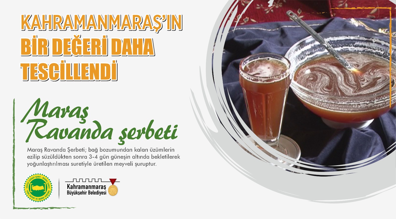 Büyükşehir Belediyesi tarafından Türk Patent ve Marka Kurumu’na yapılan başvurunun ardından Maraş Ravanda Şerbeti’nin coğrafi işareti alındı.