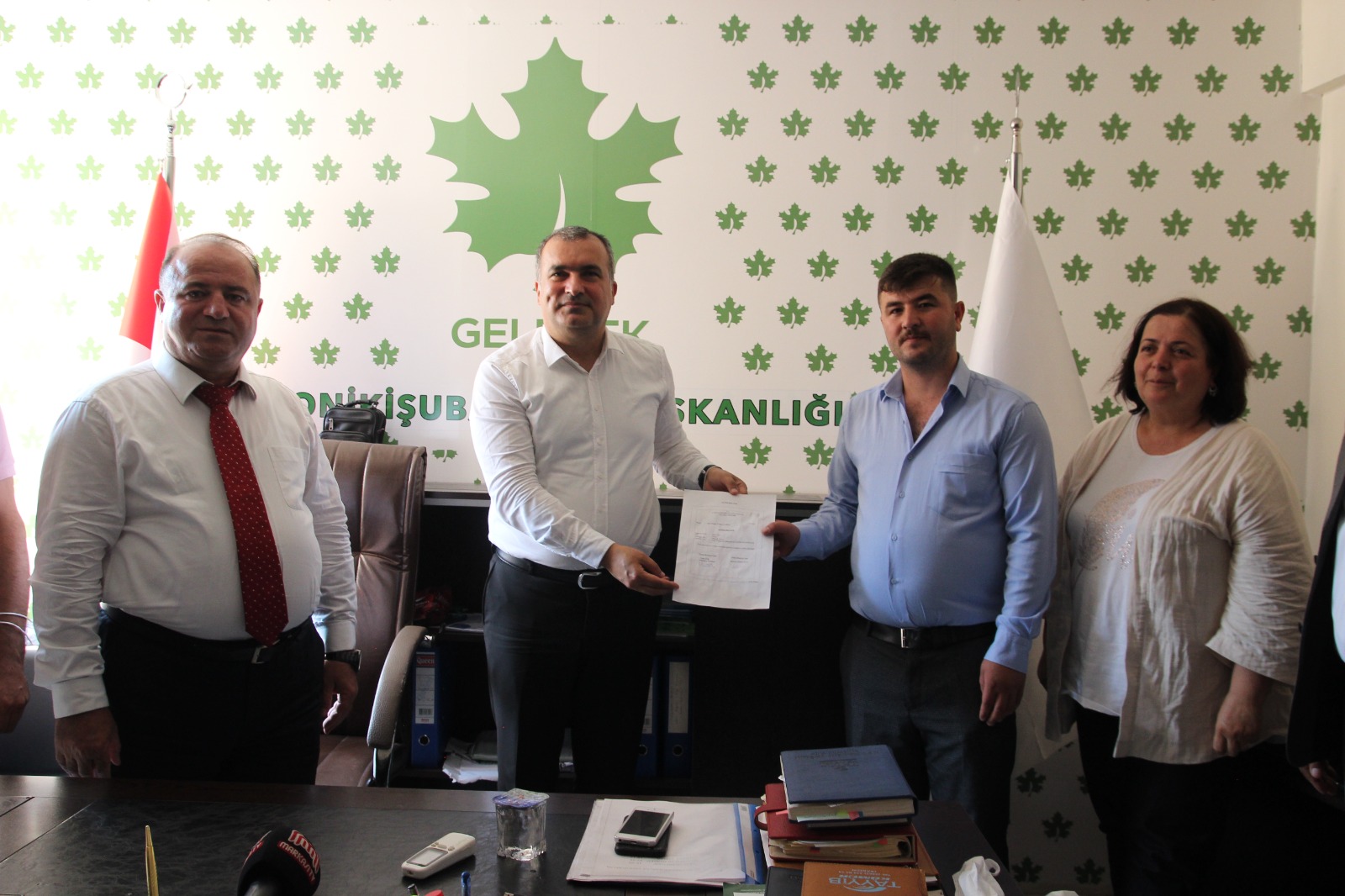 Programda, Gelecek Partisi Çağlayancerit Kurucu İlçe Başkanı olarak görevlendiren Mehmet Gökburun’a mazbatası teslim edildi.