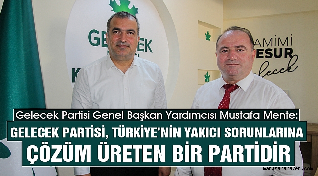 Kahramanmaraş ziyaretine ilişkin değerlendirmelerde bulunan Mente, “Bugün Kahramanmaraş’ta güzel bir program yapıyoruz, Gelecek Partisi Türkiye’nin 16 farklı ilinde şu anda sahada. Genel başkanımızın kendisi de bugün saha programı yapıyor. Biz de genel merkezden genel başkan yardımcısı, iki tane kurucu yönetim kurulu üyesi olarak Kahramanmaraş’ta programımızı yapıyoruz. Teşkilatlarımızla buluşuyoruz, basın mensuplarıyla buluşuyoruz, esnaf ziyaretleri yapıyoruz, sivil toplum kuruluşlarıyla buluşuyoruz” dedi.