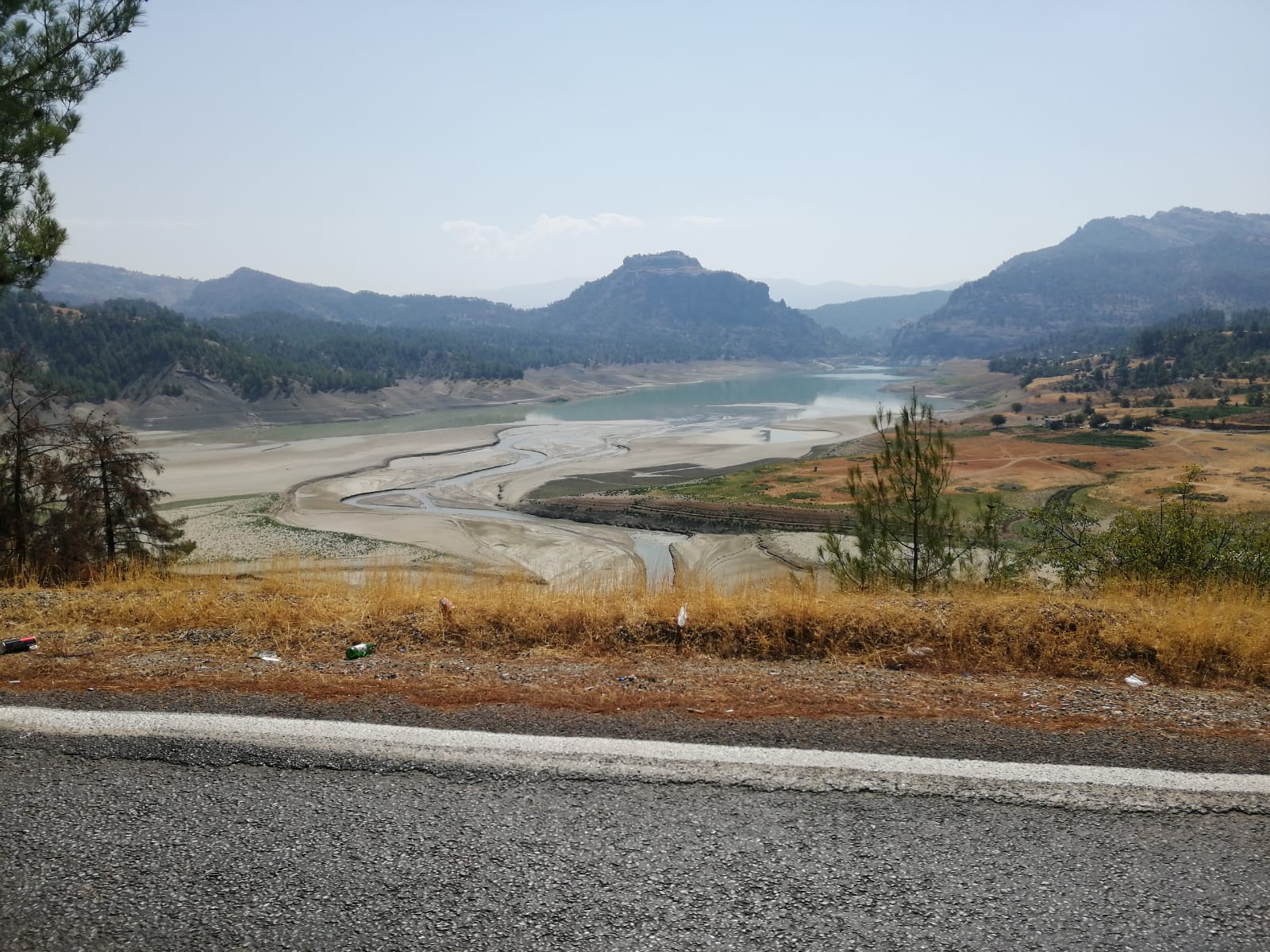 Barajın Ilıca yolu tarafında ise taban tamamen görünür hale geldi. Çekilen sular nedeniyle barajın iç kısmı adeta tarlaya dönüştü.
