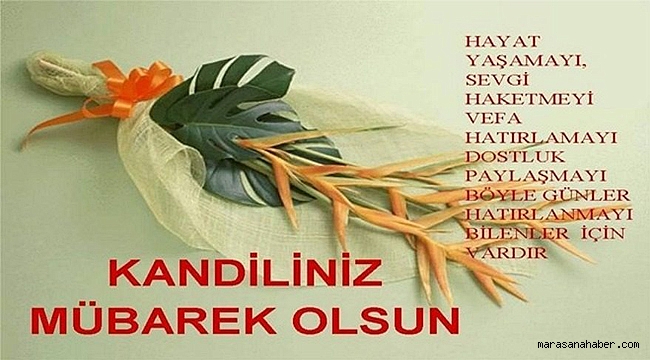 Varlığı ebedi olan, merhamet sahibi, adaletli Yüce Allah kendisine dua edenleri geri çevirmez. Dualarımızın Rabbimizin yüce katına iletilmisine vesile olan bu mübarak kandil gecesinde dualarda buluşmak ümidiyle Kandilinizi kutlarım.Güneşin güzel yüzü, yüreğine dokunsun, kabuslar senden uzakta, melekler baş ucunda dursun. Güneş öyle bir geceye doğsun ki, duaların kabul, kandilin mübarek olsun.Allah’ın aşkıyla yan bu gece, Mevlana gibi dön bu gece, secdeye varıp huzura erince, şu fakiri de an bu gece. Hayırlı kandiller!