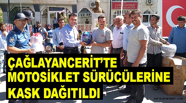 Kahramanmaraş’ın Çağlayancerit ilçesinde motosiklet sürücülerine kask dağıtıldı.