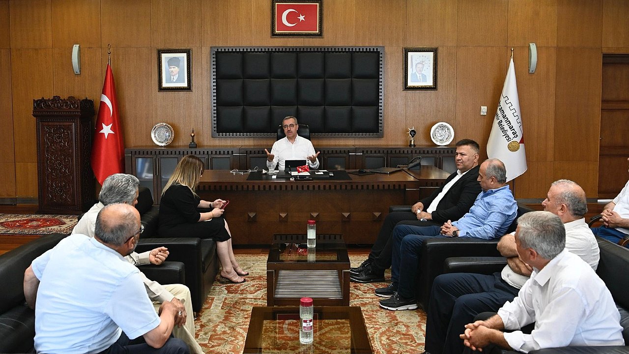 Kahramanmaraş Büyükşehir Belediye Başkanı Hayrettin Güngör; Onikişubat Muhtarlar Derneği Başkanı Ahmet Kılçık ile Onikişubat ilçesi Fatih, Dereboğazı, Hartlap, Kerimli, Çevrepınar, Necip Fazıl, Kertmen, Beşen, Ilıca, Sadıklı ve Şazibey mahalle muhtarlarını makamında ağırladı. Nazik ziyaretleri için Onikişubat Muhtarlar Derneği Başkanı Ahmet Kılçık ve muhtarlara teşekkür eden Başkan Hayrettin Güngör, “Onikişubat ilçemizde hemşehrilerimize hizmet veren muhtarlarımızı misafir ettik. Mahallelerimizin ihtiyaçlarını tespit etme ve yatırımlarımızı hayata geçirme noktasında her zaman yüksek bir koordinasyon içerisinde olduğumuz muhtarlarımıza teşekkür ediyorum. Mahallelerimizin ve şehrimizin katma değerini artırmak için el birliğiyle çalışmaya devam edeceğiz” dedi. Onikişubat Muhtarlar Derneği Başkanı Ahmet Kılçık ve muhtarlar da mahallelere kazandırdıklarından dolayı Büyükşehir Belediye Başkanı Hayrettin Güngör’e teşekkür etti.