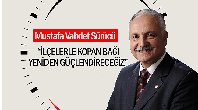 Saadet Partisi kahramanmaraş Büyükşehir Belediye Başkan adayı Mustafa Vahdet Sürücü; “Benim en büyük projem, ilçeleri ve merkezi birbirinden kopuk olan Kahramanmaraş’ı gönül bağlarıyla, iktisadi ve kültürel bağlarıyla kaynaştıracağım.” Dedi.