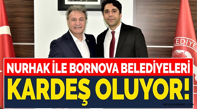 Kahramanmaraş'ın Nurhak ilçesi ile İzmir'in Bornova ilçesi kardeş şehir oluyor. Mecliste alınan kararın ardından çalışmalar başlarken, Nurhak Belediye Başkanı İlhami Bozan, Bornova Belediye Başkanı Dr. Mustafa İduğ’u ziyaret etti.