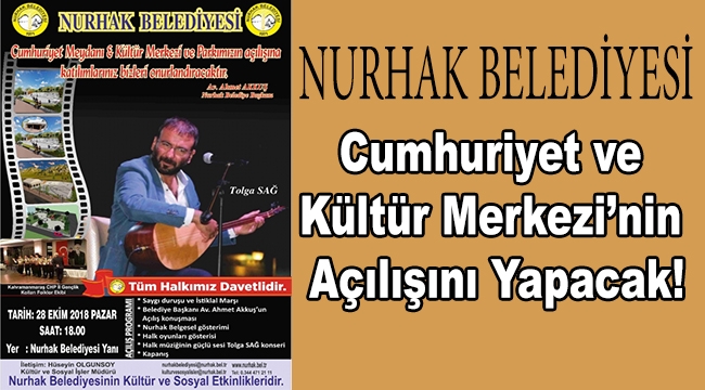açılışını yapacak. Nurhak Belediye Başkanı Ahmet Akkuş tarafından