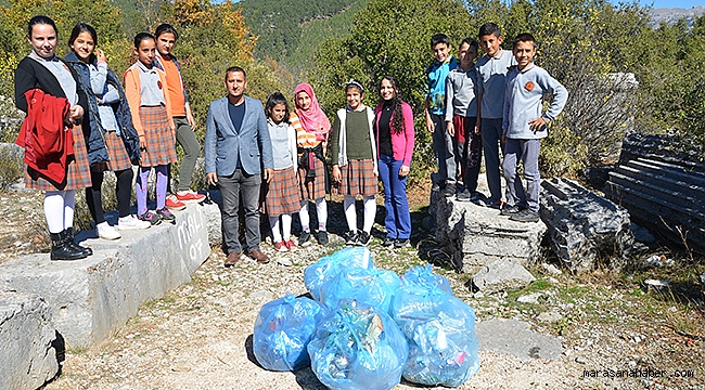ortaklaşa gerçekleştirilen etkinlikte, öğrenciler hem çöp topladı hem de antik