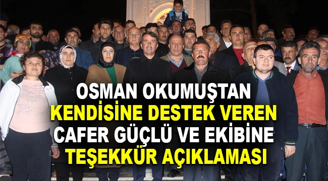Türkoğlu Belediye Başkanı ve Cumhur İttifakı Belediye Başkan adayı Osman Okumuş, bağımsız başkan adaylığında çekilerek şahsını destekleme kararı alan Cafer Güçlü'ye teşekkür etti.