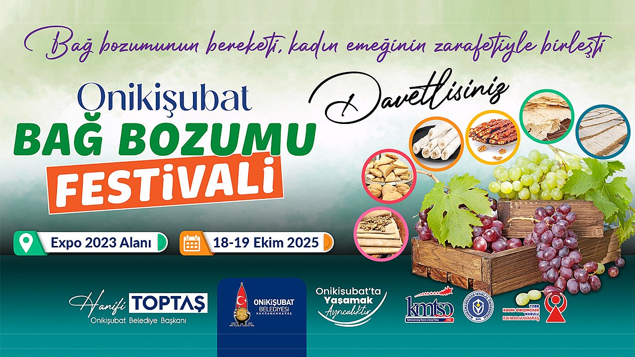 Onikişubat Belediye Başkanı Hanifi Toptaş, tüm vatandaşları festivale davet ederek şu ifadeleri kullandı: “Bağ bozumunun bereketini kadın emeğinin zarafetiyle buluşturduğumuz bu güzel etkinlikte, hem üreticilerimize destek olacak hem de yerel kültürümüzü yaşatacağız. Tüm hemşehrilerimizi EXPO 2023 Alanı’ndaki festivalimize bekliyoruz.”