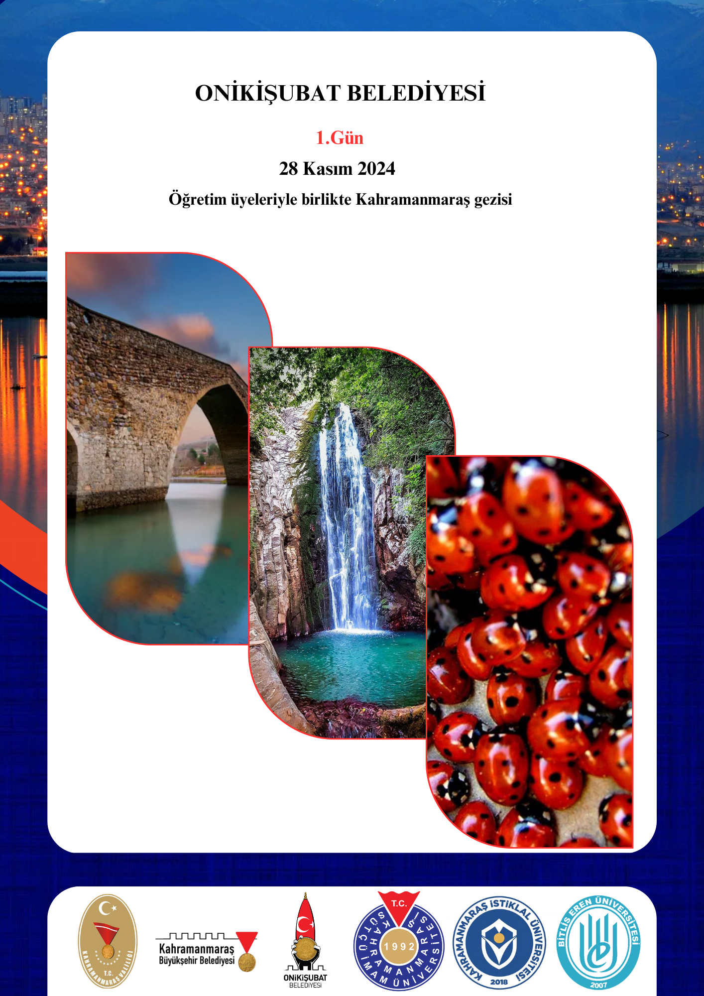 Onikişubat Belediyesi’nin ev sahipliğinde gerçekleştirilecek çalıştay, Kahramanmaraş Valiliği, Kahramanmaraş Büyükşehir Belediye Başkanlığı, Kahramanmaraş Sütçü İmam Üniversitesi, Kahramanmaraş İstiklal Üniversitesi ve Bitlis Eren Üniversitesi tarafından destekleniyor. Çalıştayda turizm, şehir planlama ve sürdürülebilir kalkınma alanlarında uzman akademisyenler bilgi ve deneyimlerini paylaşacak.Çalıştay Programı ve Öne Çıkan Etkinlikler
