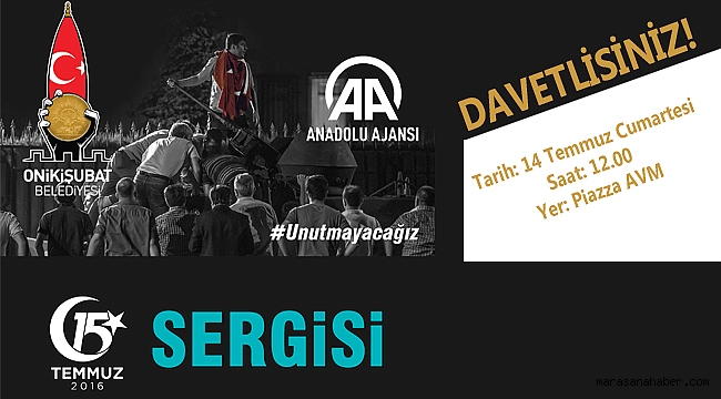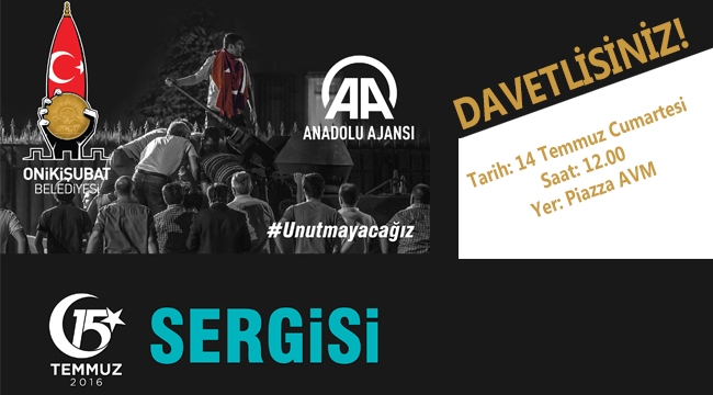 Onikişubat Belediyesi ve anadolu ajansı iş birliğinde 15 temmuz demokrasi ve milli birlik günü için fotoğraf sergisi düzenlenecek. Sergide 15 Temmuz 2016 tarihinde hain darbe girişimi karşısında millet, bayrak, vatan ve devlet sadakati uğruna canlarını feda eden insanların milli direniş ruhu yeniden yaşatılacak.Darbe gecesi yaşananları an be an anlatan fotoğraflar; vatandaşların, cumhurbaşkanının, parlamentonun, siyasi partilerin, sivil toplum kuruluşlarının demokrasiye ve hukuk devletine ne kadar candan bağlı olduğunu bir kez daha hatırlatacak.14 Temmuz Cumartesi günü Piazza Alışveriş Merkezi’nde saat 12.00’da açılışı gerçekleşecek fotoğraf sergisine tüm vatandaşlar davet edildi.