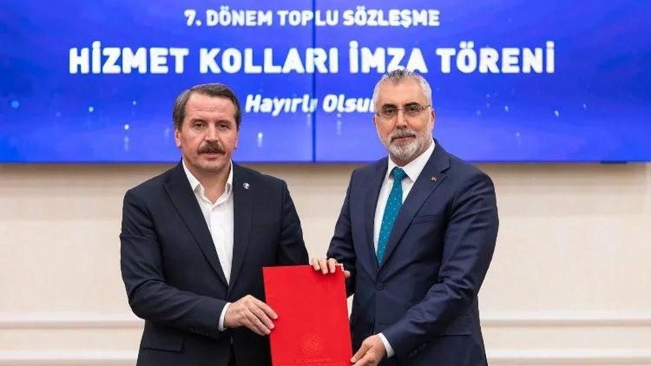 Sözleşmede, 11 hizmet kolunda ilave kazanımlardan oluşan 128 yeni ve revize maddenin bulunduğunu vurgulayan Yalçın, "291 hizmet kolu, 50 tane de genel olmak üzere toplam 341 maddenin olduğu bir kazanım skalası toplu sözleşmemizin sonucu. En önemli çözüm merkezi, toplu sözleşme masası. Uzun süredir emek veriyoruz, geceli gündüzlü çalışıyoruz, şu an saat gecenin 4'üne yaklaşmakta ve ancak içeriden çıkabildik ve imzalar ancak atılabildi. Bu da şunu gösteriyor; memur toplu sözleşmesinde 4688 Sayılı Yasanın değişme zaruretini bir kez daha işaret ediyor. Bu konuda da bir madde imzaladık. Memur toplu sözleşmesiyle ilgili 4688 Sayılı Yasayı Çalışma ve Sosyal Güvenlik Bakanlığının himayesinde düzenlemek için bir çerçeve oluşturmaya çalışacağız. Bu da çok kıymetli bir adım olacak." diye konuştu.