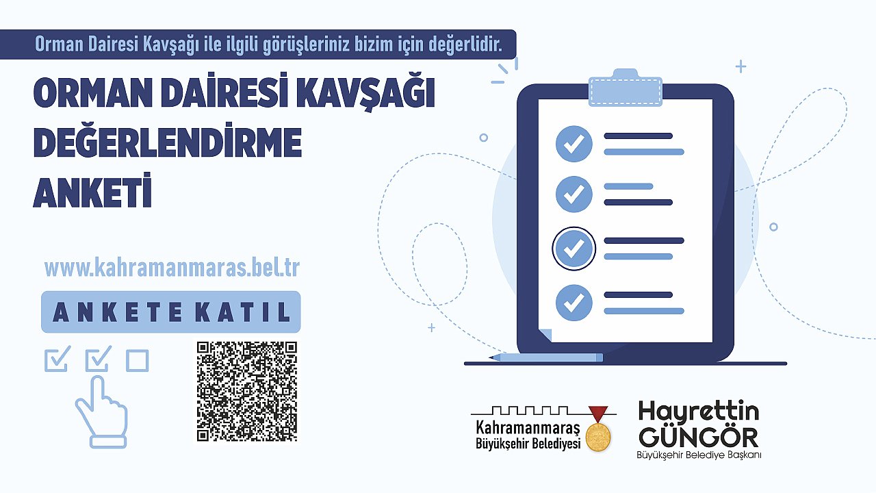 Kahramanmaraş Büyükşehir Belediyesi, katılımcı belediyecilik anlayışıyla çalışmalarını sürdürüyor. Bu kapsamda, Orman Dairesi Kavşağı’nda gerçekleştirilen yenileme çalışmalarıyla ilgili 3 soruluk bir anket çalışması başlatıldı. Ankete Büyükşehir Belediyesi internet sitesinden ulaşılabiliyor. Büyükşehir Belediyesi’nden yapılan açıklamada, “Orman Dairesi Kavşağı’nda gerçekleştirilen çalışmalara ilişkin başlattığımız ankete https://kahramanmaras.bel.tr/duyuru/2022/06/15/orman-dairesi-kavsagi-degerlendirme-anketi adresi üzerinden ulaşarak görüşünüzü belirtebilirsiniz” ifadelerine yer verildi.