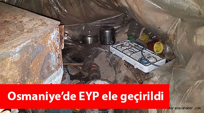 Osmaniye'de, Amanos Dağları kırsalında tespit edilen sığınakta el yapımı patlayıcı düzenekleri ve yaşamsal malzemeler ele geçirildi.
