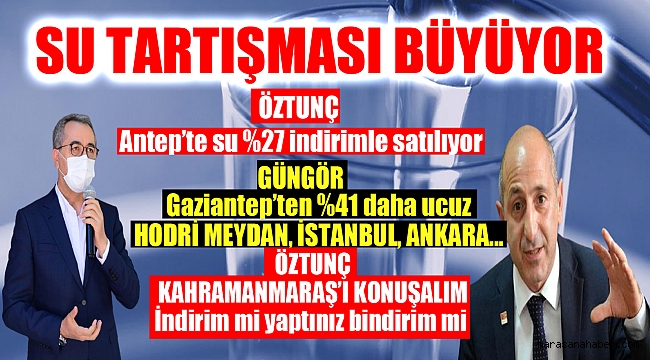 “Genel bütçemizden fert başına Kahramanmaraş’ın 3 katı pay alan ve bizim iki katımıza yakın su tarifesi uygulayan İstanbul, Ankara ve İzmir Büyükşehir Belediyeleri su ücret tarifesini bizim tarifeye indirsin biz de %50 indirim yapmaya hazırız. Hodri meydan! Kaldı ki şehrimizde Gaziantep’ten %41 daha ucuz su tarifesi uygulanmaktadır.”dedi.