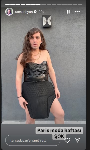 Hande Erçel, Paris'teki etkinlikte giydiği elbise sosyal medyayı ikiye bölmüştü. Elbiseye bir yorum da sosyal medyada ünlüleri taklit ettiği paylaşımlarıyla tanınan fenomen Tansu Dayan'dan geldi. Araba paspasından yaptığı kıyafetle Erçel’in kombinini taklit eden Dayan, daha önce de ünlü isimlerin tasarımlarını mizahi bir şekilde yorumlamıştı. Dayan’ın paylaşımı sosyal medyada ilgi gördü.