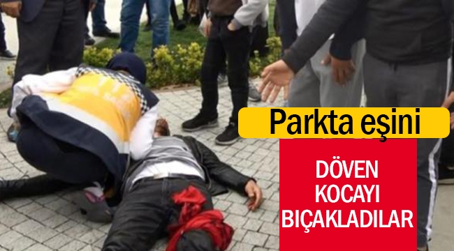 Vatandaşlar bacağından bıçaklanan Mehmet Yayla'ya yardım ederken, eşi Selma