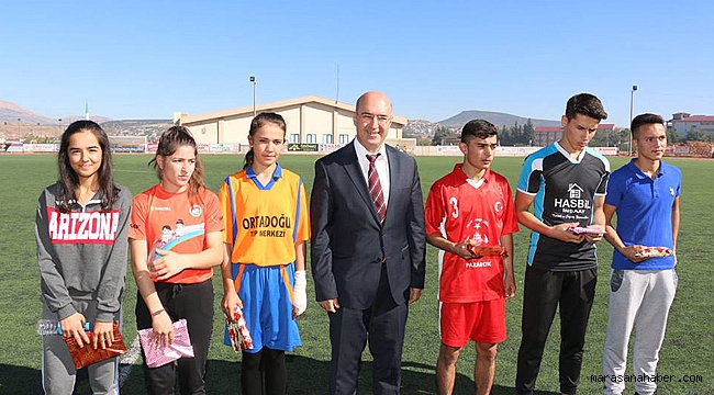 tören 100 metre kısa mesafe koşusunda dereceye giren öğrencilere Pazarcık