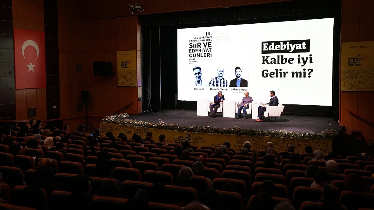 Büyükşehir Belediyesi tarafından düzenlenen 3. Uluslararası Şiir ve Edebiyat Günleri’nin son gününde Psikiyatr Prof. Dr. Erol Göka ve Yazar Mustafa Ulusoy’un katılımıyla ‘Edebiyat Kalbe İyi Gelir Mi?’ temalı konferans düzenlendi. Necip Fazıl Kısakürek Kültür Merkezi’nde düzenlenen oturuma edebiyatseverler yoğun ilgi gösterdi. Yazar Gökhan Ergür başkanlığında gerçekleştirilen oturumda Göka ve Ulusoy; insanın yalnızlaşması, benlik kavramı, edebiyatın insan üzerindeki etkisi, yazarların insan hayatına katkıları gibi pek çok konuyu farklı açılardan ele aldı. Yaklaşık 1 buçuk saat süren etkinlikte konuşmacılar, okurlardan gelen soruları da büyük bir samimiyetle yanıtladı. Edebiyatseverler, etkinlikten duyduğu memnuniyeti belirterek Büyükşehir Belediyesi’ne ve konuşmacılara teşekkür etti.