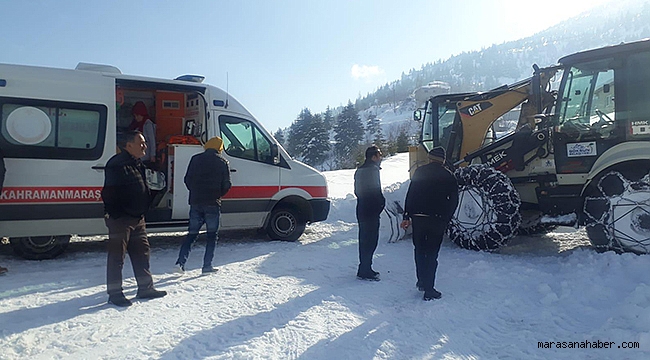 Alınan bilgiye göre, ilçeye bağlı kırsal Bahçeobası Mahallesi'nde yaşayan şeker hastası Nazim Aktaş'ın (58) rahatsızlanması üzerine yakınları, 112 Acil Servis ekiplerinden yardım istedi.İhbar üzerine yola çıkan ekipler, mahalle yolu kardan kapalı olduğu için ilerleyemedi. Ambulansı bırakıp çantalarını alan sağlık ekipleri, 4 kilometre yürüyerek ulaştıkları Aktaş'a ilk müdahaleyi evinde yaptı. Göksun Belediyesi ekipleri de iş makineleriyle yaklaşık 4 saatlik çalışmanın ardından yolu açabildi.Jandarma ve sağlık ekiplerinin yardımıyla Elbistan Devlet Hastanesine kaldırılan Aktaş'ın, durumunun iyi olduğu öğrenildi.