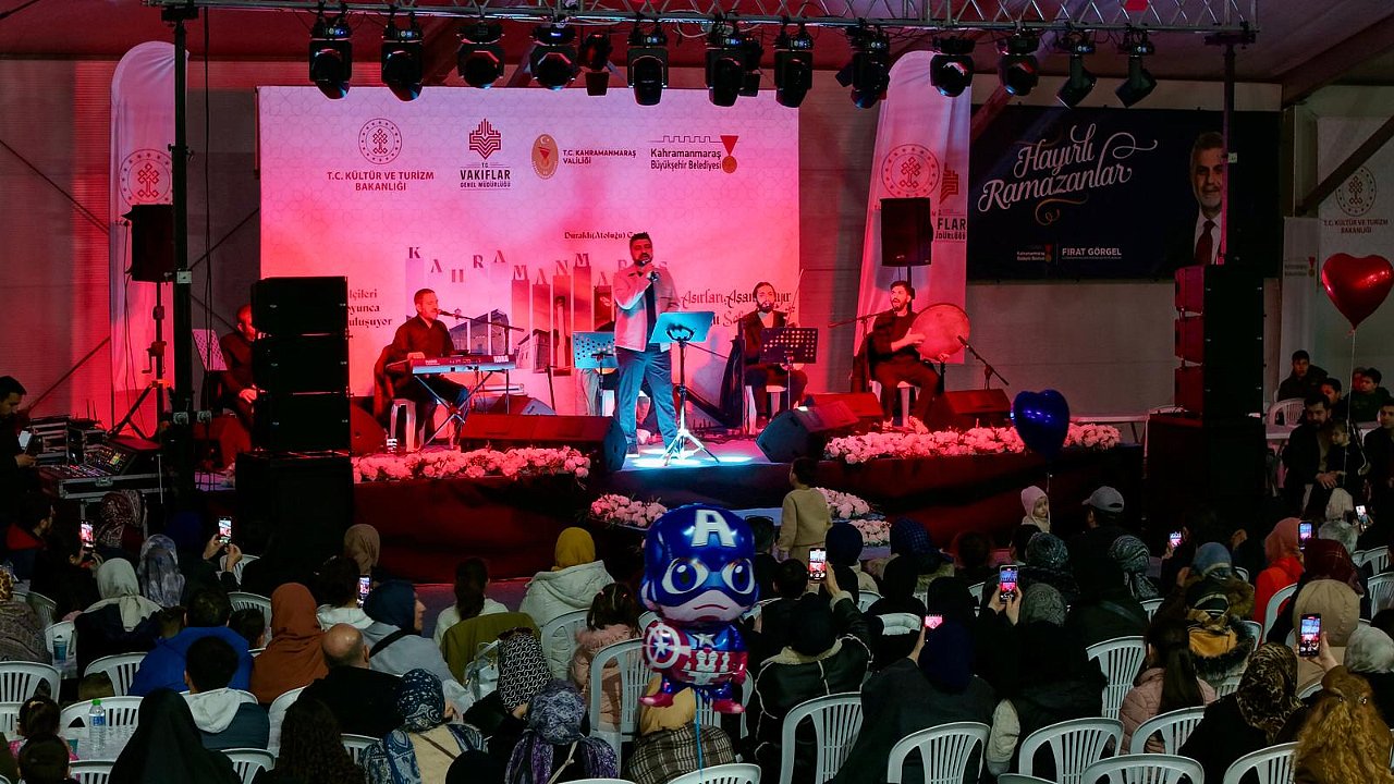 Kahramanmaraş Büyükşehir Belediyesinin Ramazan ayına özel olarak hayata geçirdiği Ramazan Sokağı, mübarek ayın yedinci gününde de binlerce vatandaşı aynı sofrada ve aynı duyguda buluşturdu. Şehrin manevi atmosferini güçlendiren etkinlikler kapsamında alanda kurulan büyük etkinlik çadırında yaklaşık 2 bin kişi birlikte iftar yaparak oruçlarını açtı. Dualar eşliğinde açılan oruçların ardından Ramazan akşamının huzur dolu iklimi kültür ve sanat programlarıyla taçlandırıldı.