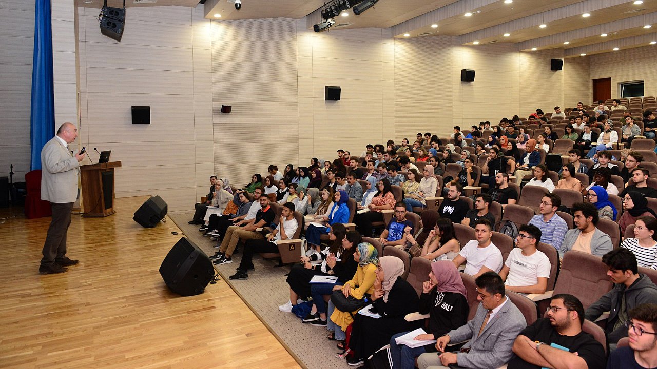 KSÜ Yunus Emre Kongre ve Kültür Merkezi Kahverengi Salonda gerçekleştirilen ilk derste Rektör Yasım, Tıp Fakültesi 1. sınıf öğrencilerine hitap etti.