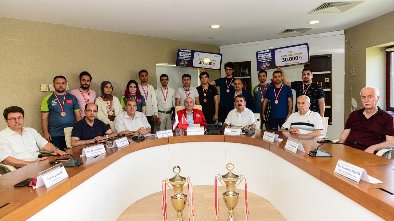 Mühendislik ve Mimarlık Fakültesi Dekanı Prof. Dr. Mehmet Ünsal öncülüğünde Elektrik-Elektronik Mühendisliği Bölümünden Prof. Dr. Ahmet Serdar Yılmaz, Makine Mühendisliği Bölümünden Doç. Dr. Çağrı Uzay ve Arş. Gör. Muhammet İbrahim Aşçı'nın danışmanlığını yürüttüğü takımlar KSÜ Rektörü Prof. Dr. Alptekin Yasım ve KSÜ yönetim kurulunu ziyaret ederek kupa, madalya ve plaketlerini aldılar.
