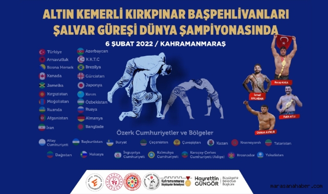Kahramanmaraş Büyükşehir Belediyesi, uluslararası bir spor etkinliğine daha ev sahipliği yapmaya hazırlanıyor. Dünya Etnospor Konfederasyonu ve Türkiye Geleneksel Spor Dalları Federasyonu koordinasyonunda 6 Şubat Pazar günü kentte Şalvar Güreşi Dünya Şampiyonası düzenlenecek. Merkez Spor Kompleksi’nde saat 10.00’da start alacak şampiyonaya; Arnavutluk, Bosna Hersek, Kanada, Jamaika, Kırgızistan, Moğolistan, Ruanda, Afganistan, İran, Azerbaycan, Rusya, Japonya, Almanya, KKTC, Brezilya, Gürcistan, Özbekistan, Bangladeş ile özerk cumhuriyetler ve bölgeler dahil olmak üzere 40 farklı ülkeden 300 sporcu katılacak.