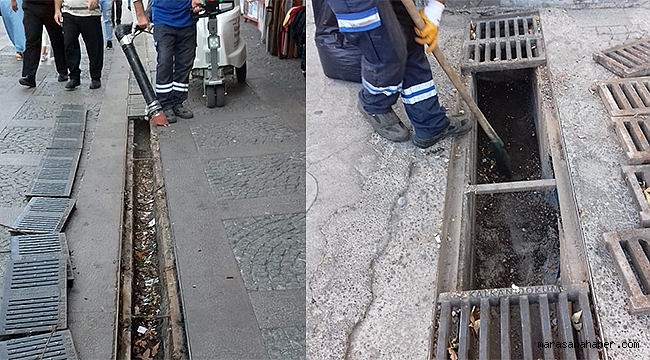 Belediyesi, mazgalların tıkanıklığını temizlerken, kırılan veya eskiyen