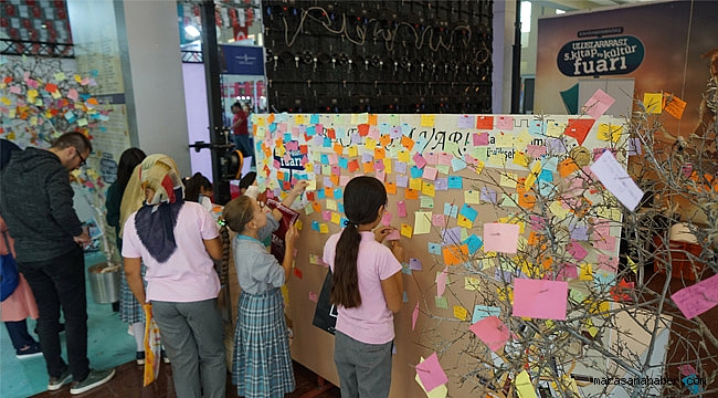 Kahramanmaraş Büyükşehir Belediyesi tarafından gerçekleştirilen, Anadolu’nun en büyük fuarlarından olan Uluslararası Kahramanmaraş 5. Kitap ve Kültür Fuarı’nda oluşturulan bir köşede insanların fikirlerini yazmalarına imkan tanınıyor.