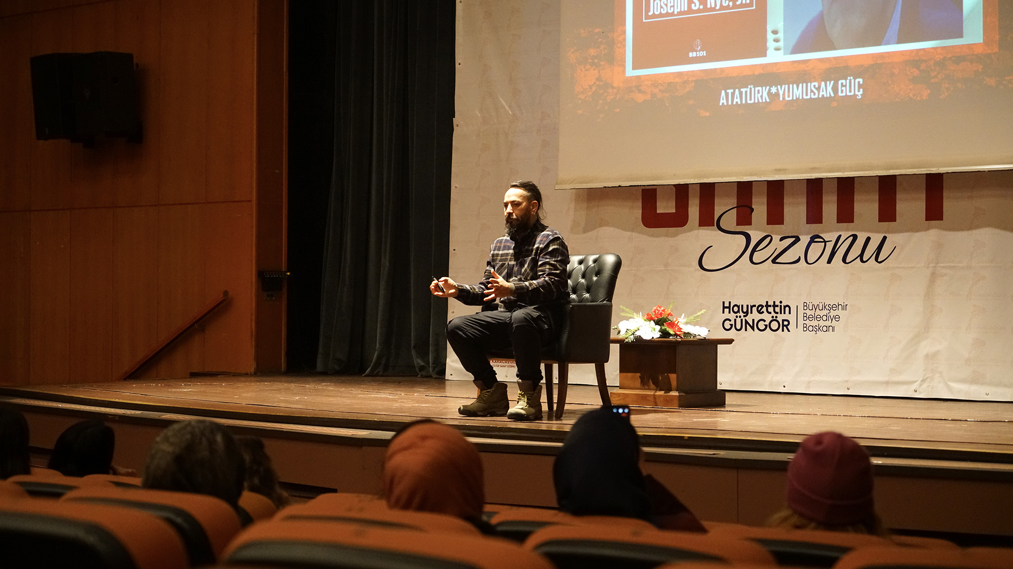 Kültür Sanat Etkinlikleri kapsamında sanatseverlerle buluşan diğer bir isim ise Yazar Mustafa Tatcı oldu. Yunus Emre’yi farklı perspektiflerden ele alan birçok eserde imzası bulunan Tatcı, “Yunus Emre, başta tasavvuf edebiyatı olmak üzere birçok alanda eser vermiş ve kendisinden sonra gelen birçok yazar ve şaire ilham kaynağı olmuştur. Aşk medeniyetinin temellerini Yunus Emre atmıştır. Bu alanda eser veren tüm şairler Yunus Emre’yi üstâd ve yol gösterici olarak bilir. Aynı zamanda Yunus Emre, Hakk’a davet eden ve yönlendirici bir konumda yer alır. Dolayısıyla eserlerinde işlediği konuları bu istikamet doğrultusunda ele almıştır. Yunus’un sözü ve özü Kur’an-ı Kerim’e ve Resulullah’a dayalı olduğunu görmekteyiz. Ayrıca aşka ve irfana dayalı İslam anlayışını Türkçe olarak ilk defa anlatan kişi Yunus Emre’dir. Dolayısıyla Türkçeyi kanatlandıran, derinleştiren ve manalandıran kişidir diyebiliriz. Dünyanın özellikle batı coğrafyasının İslam düşmanlığı yaptığı bir ortamda yaşayan Yunus Emre, ‘Ben gelmedim dava için benim işim sevi için. Dostun evi gönüllerdir, gönüller yapmaya geldim’ diyerek hayattaki gayesini belirtmektedir” dedi.