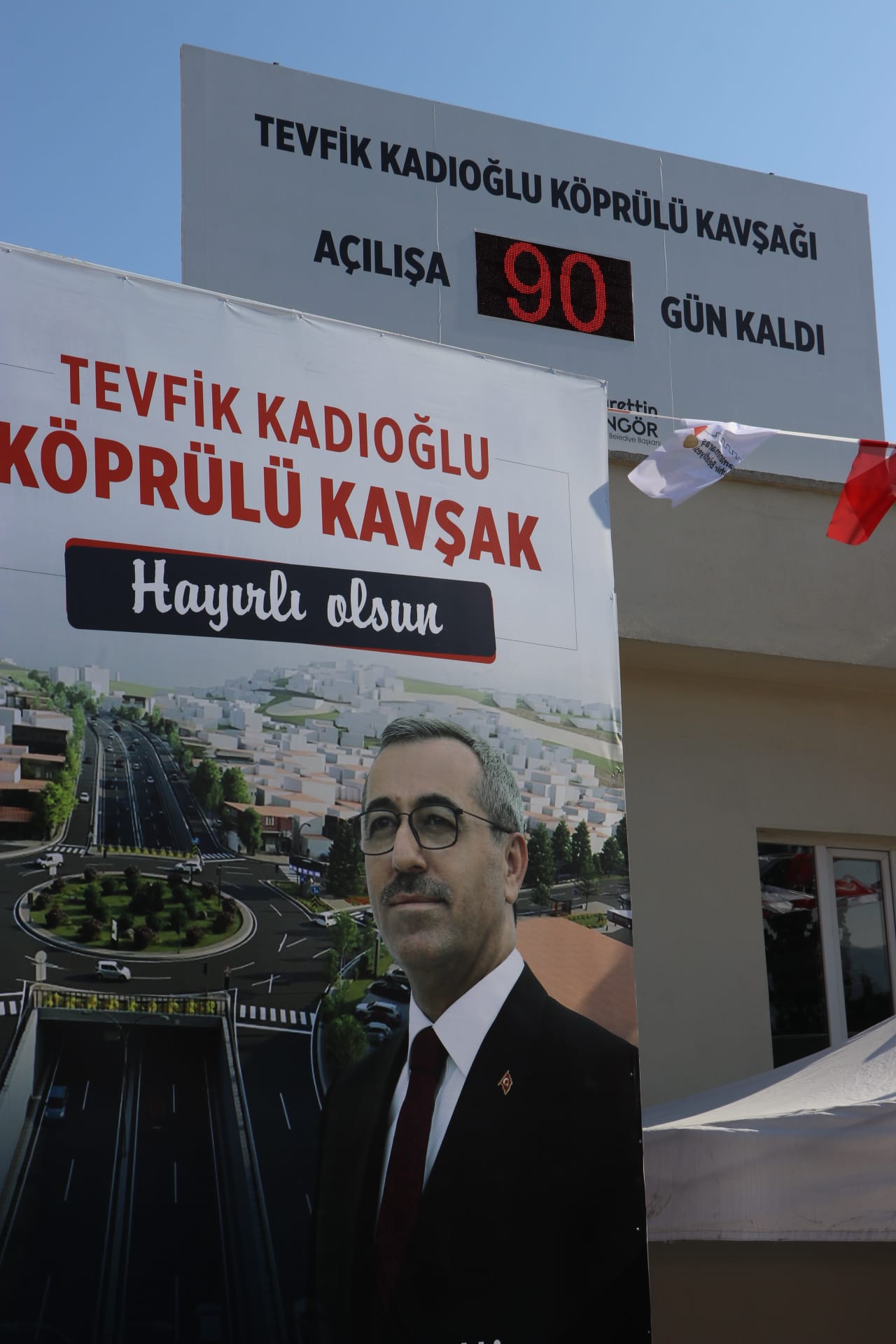 60 metre uzunluğunda çift şeritli tünel ve 500 metre uzunluğunda bağlantı yollarını kapsayan ve 55 Milyon TL’lik Tevfik Kadıoğlu Köprülü Kavşak projesi 90 günde tamamlanacak.